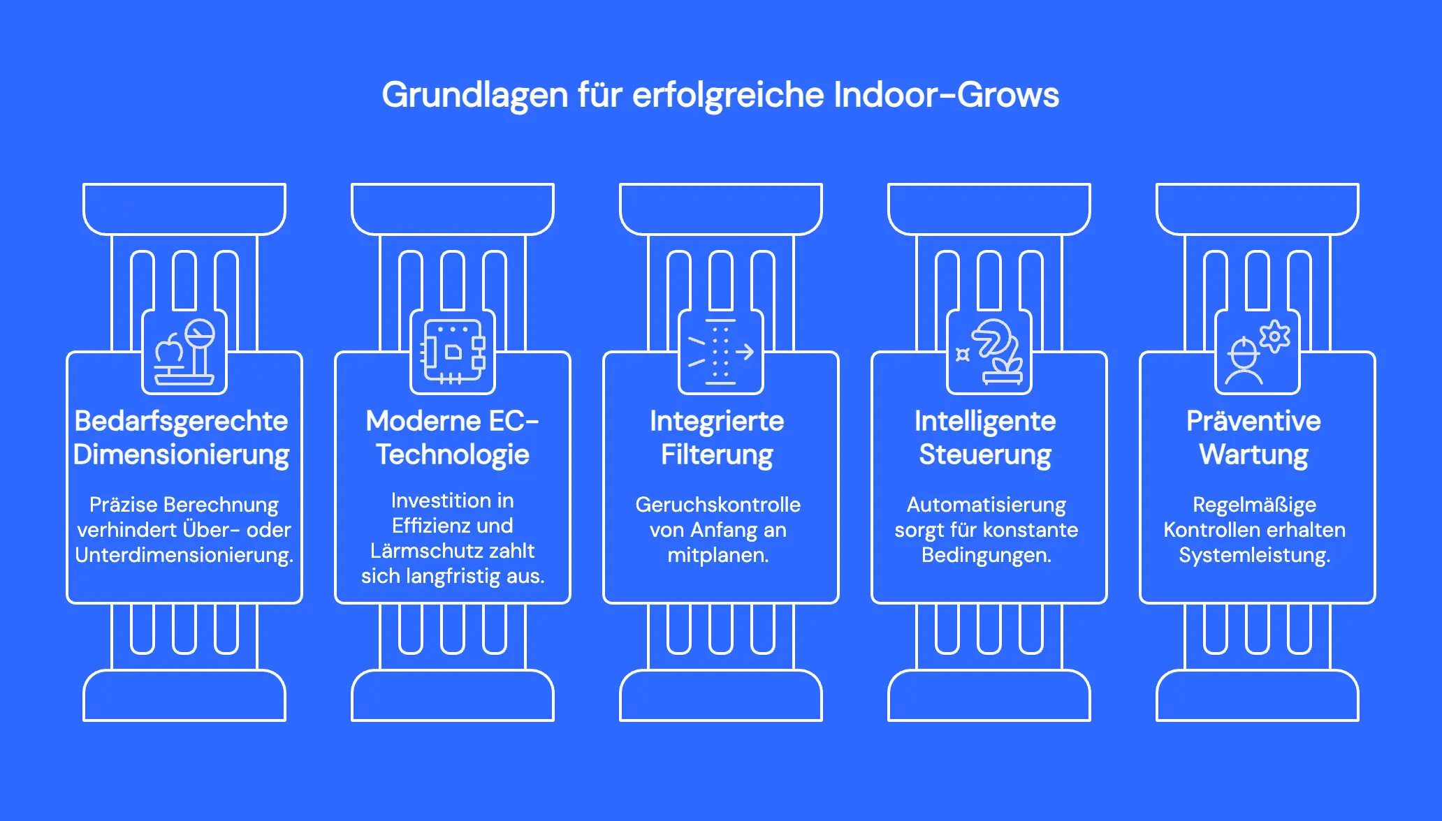 Die korrekte Dimensionierung ist entscheidend für Energieeffizienz und Pflanzenerfolg. Zu schwache Systeme führen zu Klimaproblemen, überdimensionierte Anlagen verschwenden Energie und erzeugen unnötige Geräusche.