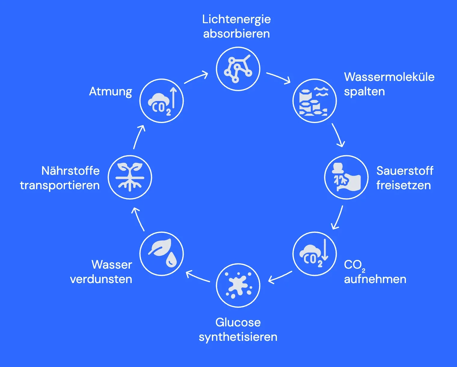 Um ein optimales Klimasystem zu entwickeln, müssen wir zunächst verstehen, wie Pflanzen funktionieren. Die Photosynthese ist ein komplexer biochemischer Prozess, bei dem Pflanzen mithilfe von Lichtenergie, CO₂ und Wasser organische Verbindungen (Glucose) synthetisieren und dabei Sauerstoff freisetzen.